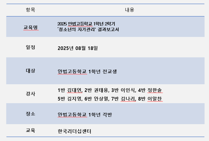 [안법고] 2학년 2학기 청소년의 자기관리