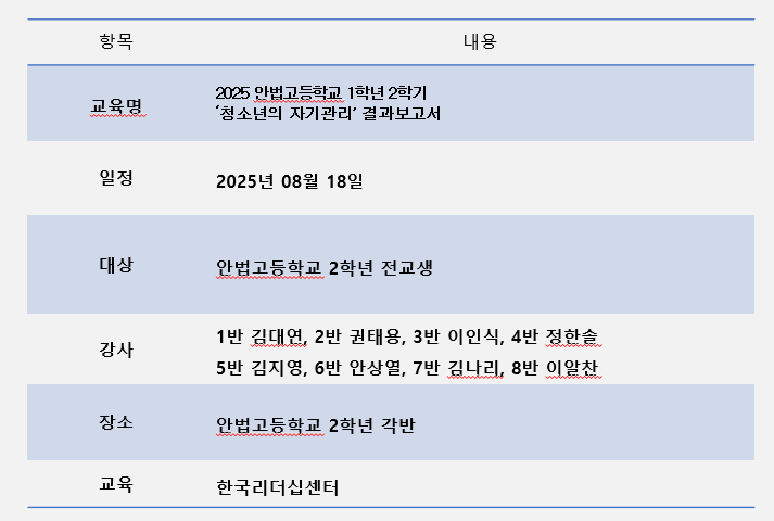 [안법고] 2학년 2학기 청소년의 자기관리