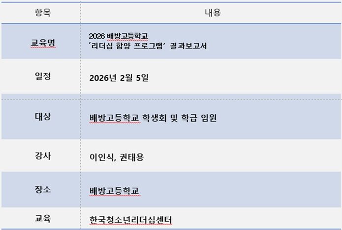 [배방고등학교] 리더십 함양프로그램