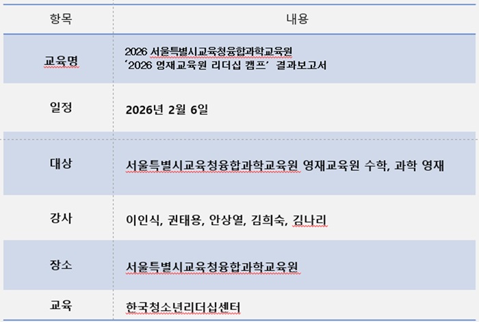 [서울시교육청융합과학교육원] 2026 영재교육원 리더십 캠프