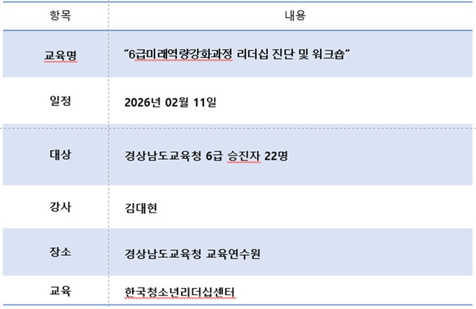[경남교육연수원] 6급 미래역량강화과정 리더십 진단 및 워크숍